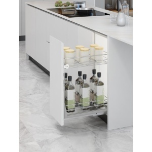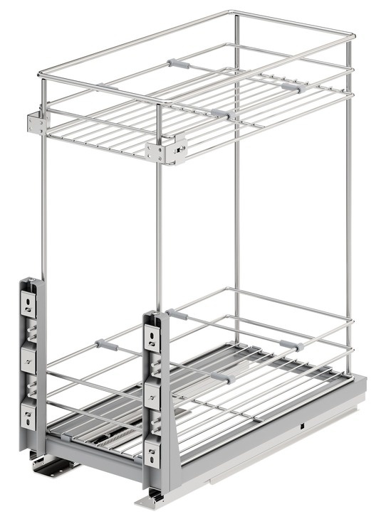 Transformați spațiile înguste din bucătărie în zone de depozitare extrem de eficiente cu acest sistem inovator de extragere totală. Proiectat pentru accesibilitate maximă și organizare optimă, coșul din oțel, cu finisaj cromat lucios, aduce un plus de eleganță și funcționalitate oricărui mobilier. Ideal pentru sticle, condimente, produse de curățenie și alte articole frecvent utilizate.