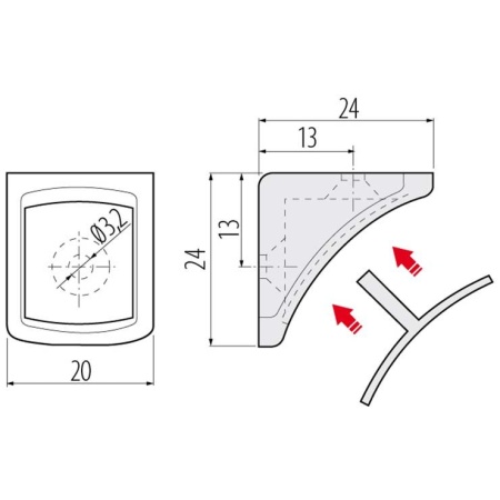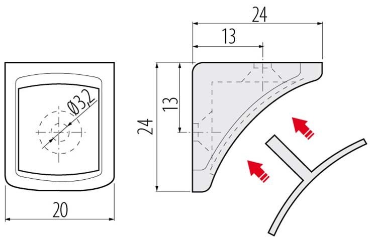 - Compatibil cu: corpuri de mobilier și polițe montate la 90° în interiorul acestora.